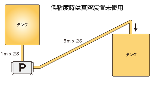 低粘度の液を扱う場合には低い真空度で運転してそれぞれの液粘度に対して最適な力でポンプ内に液体を呼び込むことにより、一台のポンプで低粘度から高粘度まで幅広い粘度のポリマー溶液を移送できるようになった。