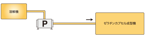 溶かしたゼラチンを溶解機からカプセル成型機へ移送するラインにおいて、既設設備で次のような課題を抱えていた。
